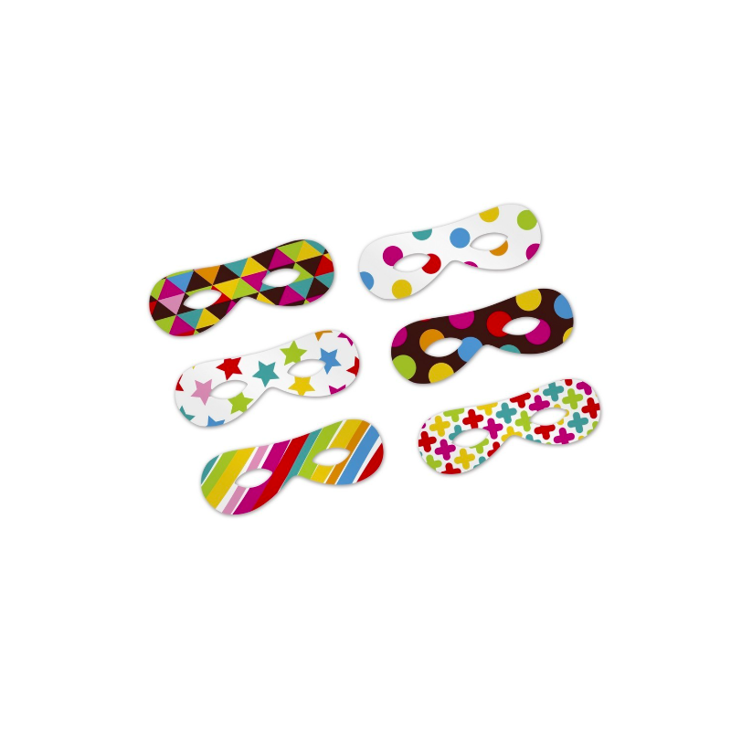 Antifaz de papel impreso con originales diseños multicolor ideal para utilizar en fiestas de cumpleaños, cotillones de fin de año y otras celebraciones. Modelos surtidos.