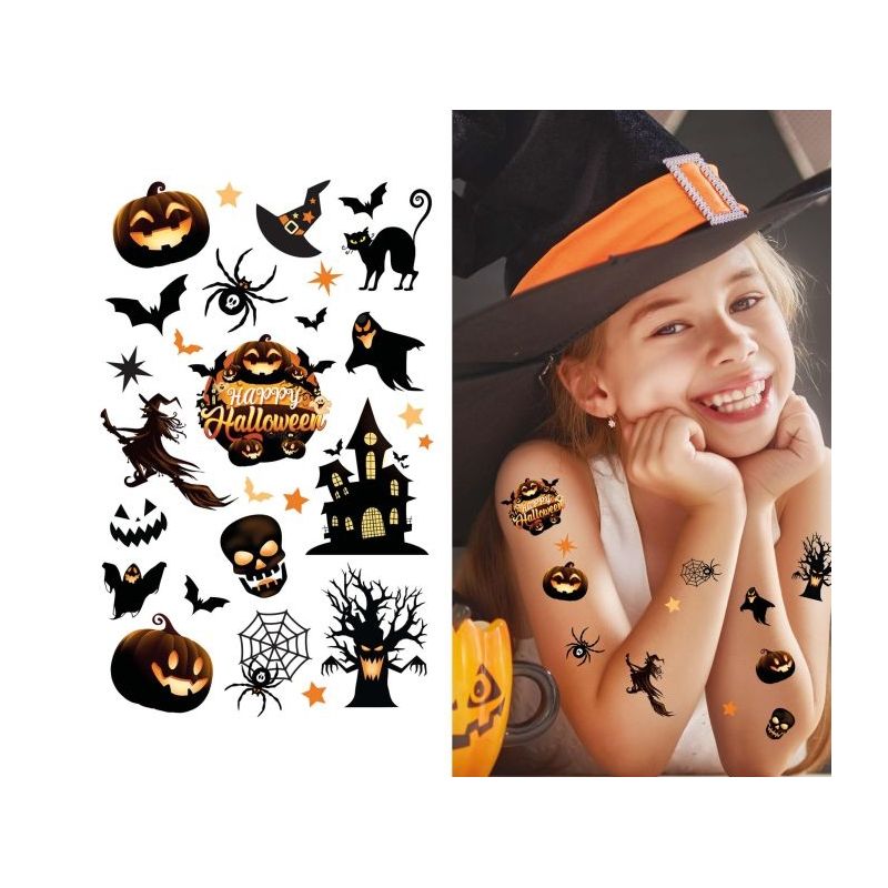 Pack de originales y divertidos tatuajes infantiles con diseños de Halloween. Otros modelos disponibles a parte.
