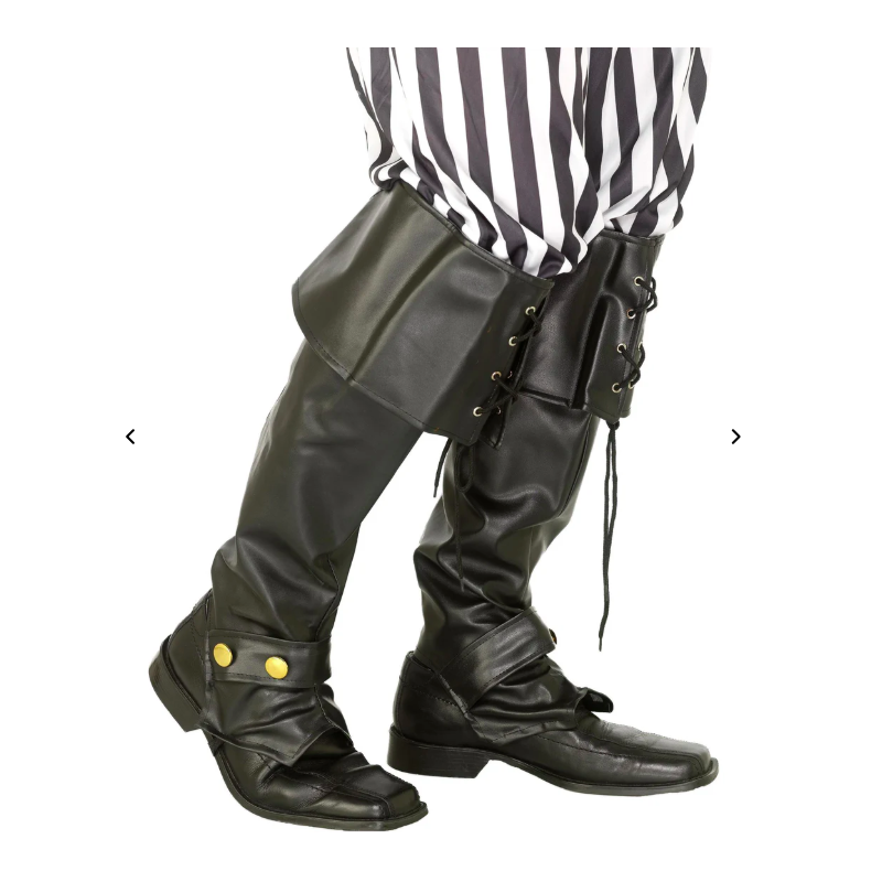 Cubrebotas de polipiel negro ideal para complementar tus disfraces de pirata, mosquetero, medieval y otras temáticas en fiestas de Carnaval y otras celebraciones. Talla única.