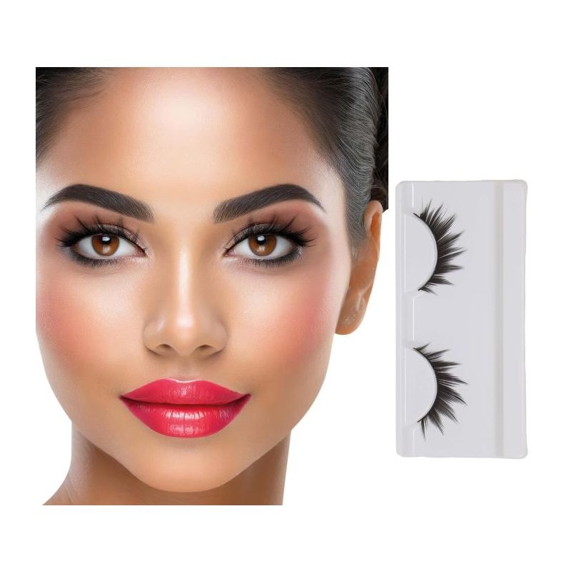 Pestañas negras postizas efecto wow ideales para crear maquillajes y caracterizaciones de fantasía en fiestas de Carnaval, Halloween y otras celebraciones.