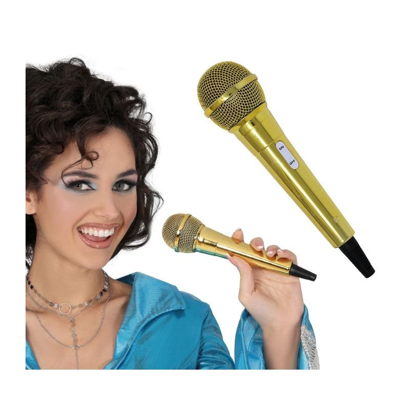 Dale un toque vibrante a tu disfraz de cantante y diviértete con este original micrófono dorado de lo más realista que dará el toque definitivo a tu look.