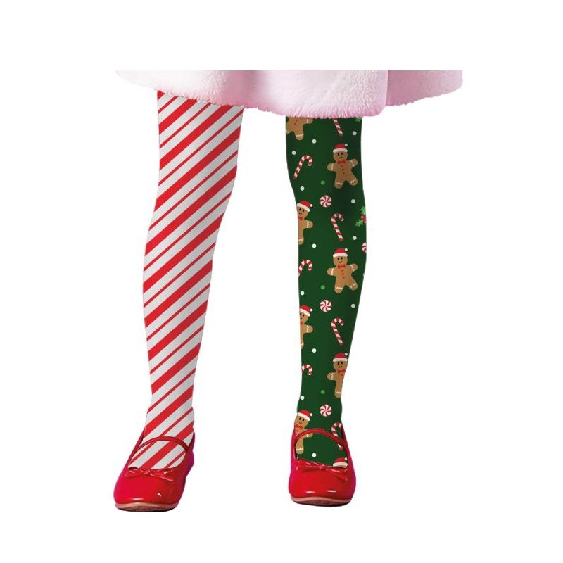 Originales medias infantiles con dibujos navideños y galletas de genjibre ideales para complementar disfraces de Mamá Noel, elfa o para dar un toque divertido a cualquier look en estas fechas tan especiales. Disponibles en tallas para niñas de 3 a 6 y de 7 a 12 años. Otros modelos disponibles a parte.