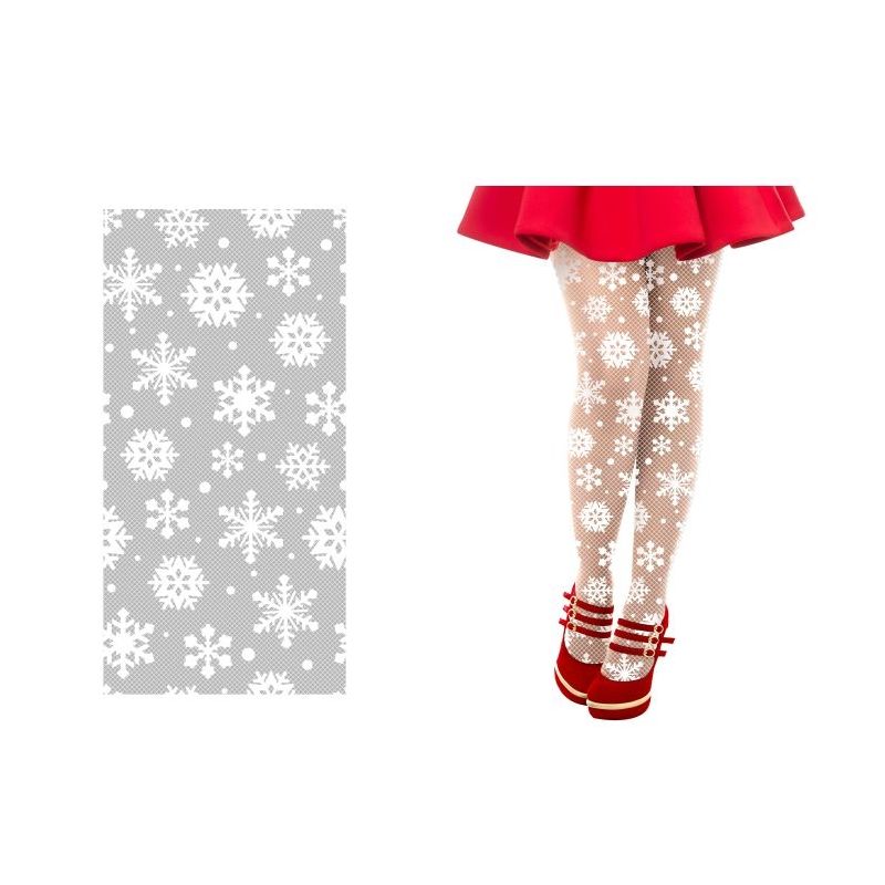 Originales medias blancas impresas con copos de nieve ideales para complementar disfraces de Mamá Noel, muñeco de nieve o para dar un toque divertido a cualquier look en estas fechas tan especiales. Disponibles en talla única de adulto para mujer. Otros modelos disponibles a parte.