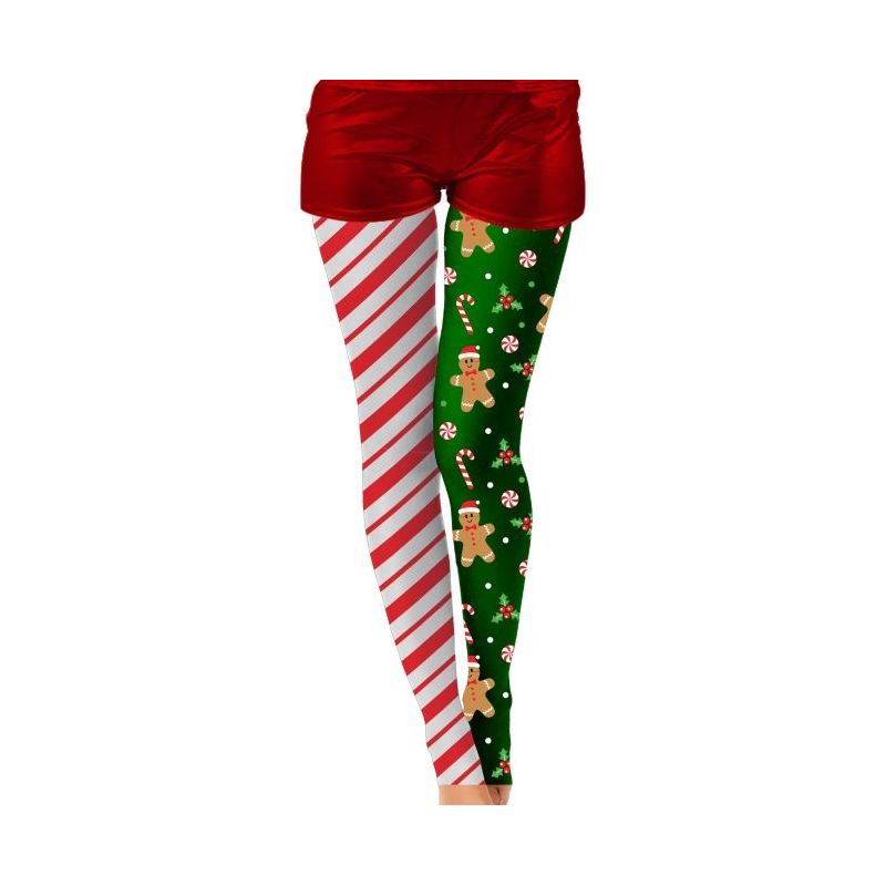 Originales medias navideñas para mujer impresas con galletas de jengibre sobre fondo verde y rayas rojas y blancas perfectas para dar un toque divertido a tus looks en estas fechas tan especiales o complementar tus disfraces de Navidad.
