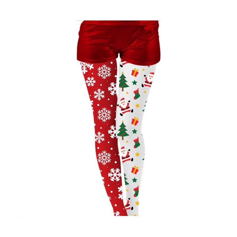 Originales medias navideñas para mujer impresas con árboles de navidad y copos de nieve sobre fondo rojo perfectas para dar un toque divertido a tus looks en estas fechas tan especiales o complementar tus disfraces de Navidad.
