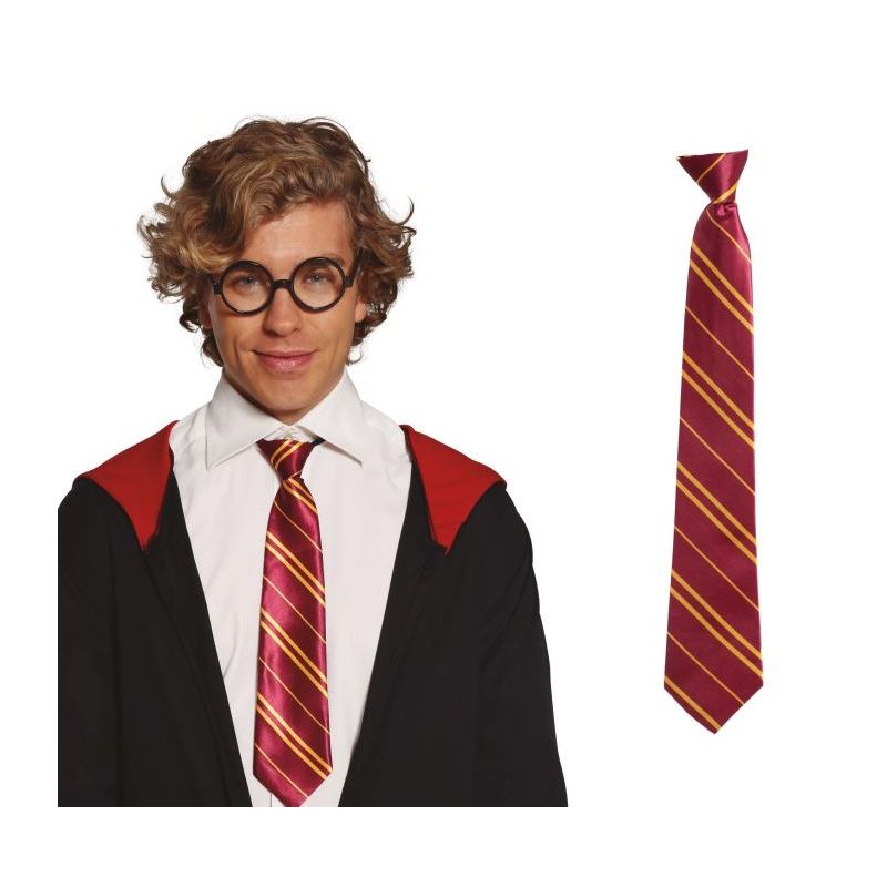 Corbata de raso en color burdeos con rayas amarillas ideal para complementar tus disfraces del mago Harry Potter. Largo: 45 cm.