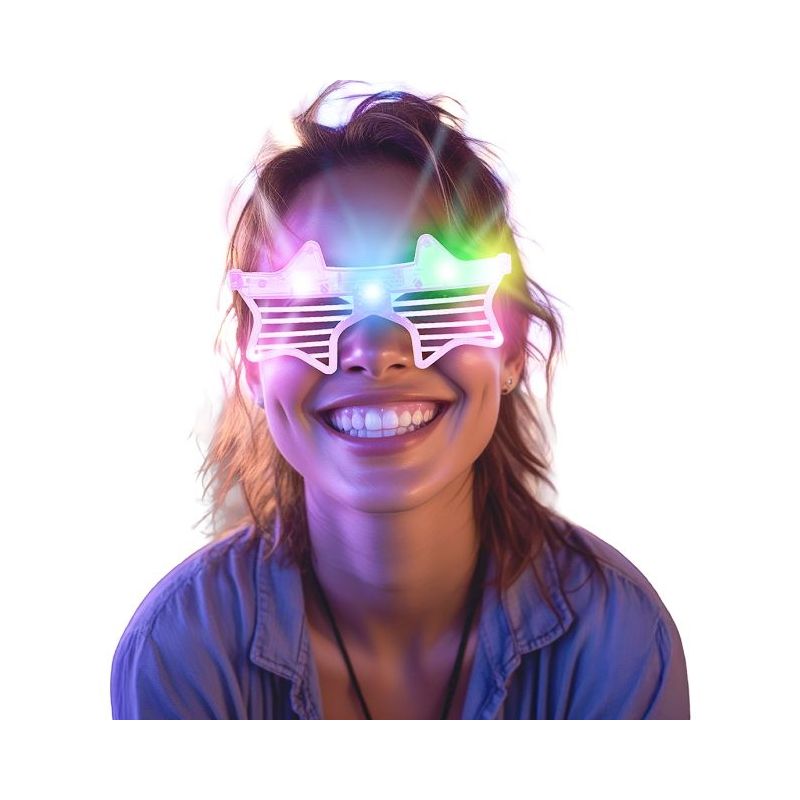 Originales gafas con forma de estrella y luces led ideales para dar un toque divertido a cualquier look en fiestas de Carnaval y otras celebraciones. Colores surtidos. Talla única para adulto.