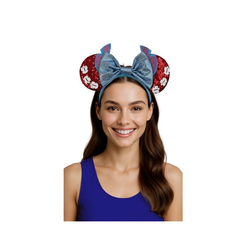 Diadema con orejas azules y lazo ideal para dar un toque divertido a tus disfraces en fiestas de Carnaval y otras celebraciones. Talla única para mujer o niña.