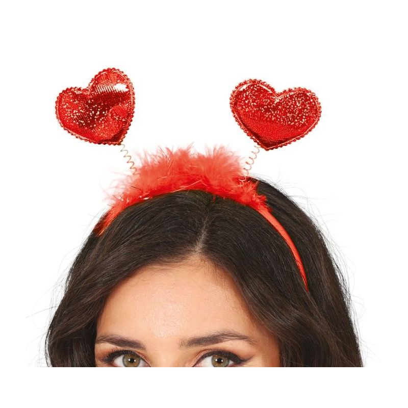Diadema con corazones rojos ideal para llenar de amor tus disfraces en fiestas de Carnaval y otras celebraciones como San Valentín.