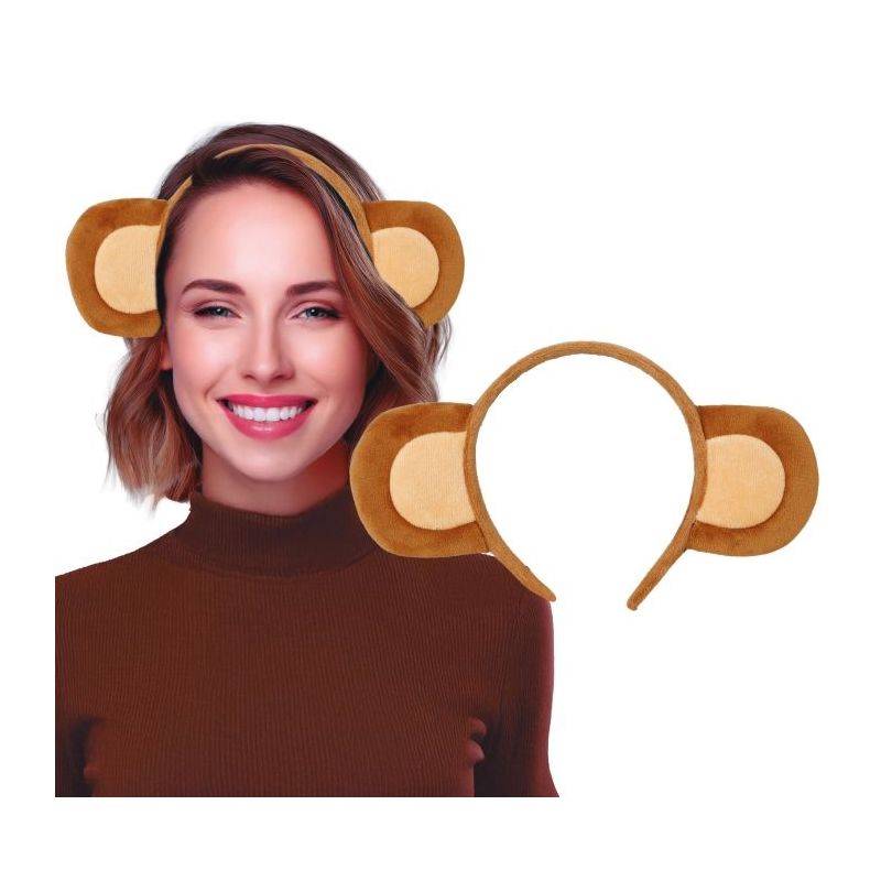Diadema con orejas de mono ideal para complementar tus disfraces de animales en fiestas de Carnaval y otras celebraciones.