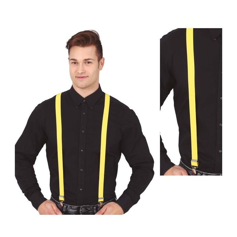 Originales tirantes de color amarillo ideales para dar un toque alegre y divertido a tu look. Talla única de adulto para hombre o mujer. Unisex. Otros colores disponibles a parte.