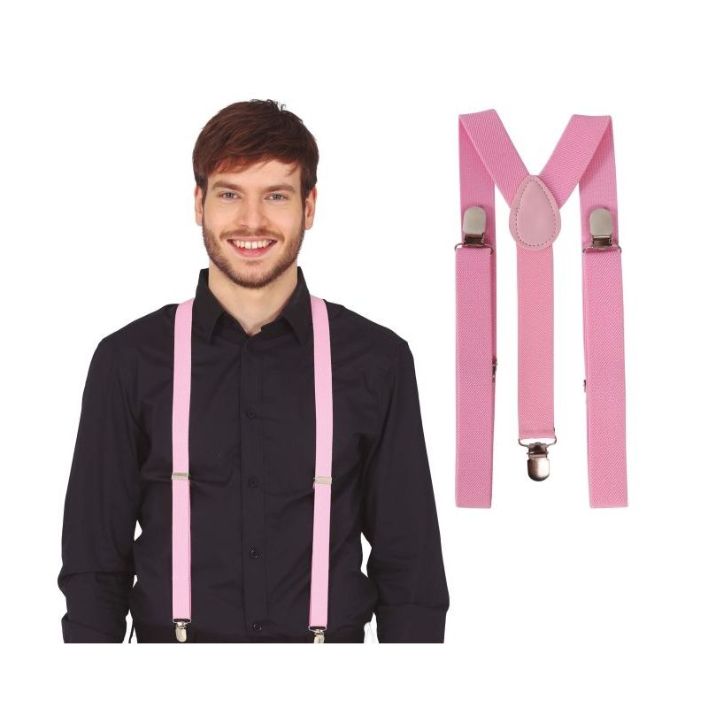Originales tirantes de color rosa pastel ideales para dar un toque alegre y divertido a tu look. Talla única de adulto para hombre o mujer. Unisex. Otros colores disponibles a parte.