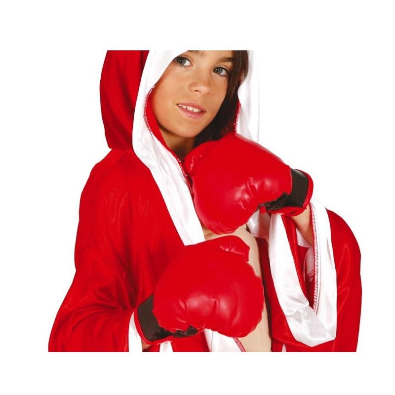 Guantes acolchados rojos ideales para completar disfraces de boxeador. Talla única infantil para niño.