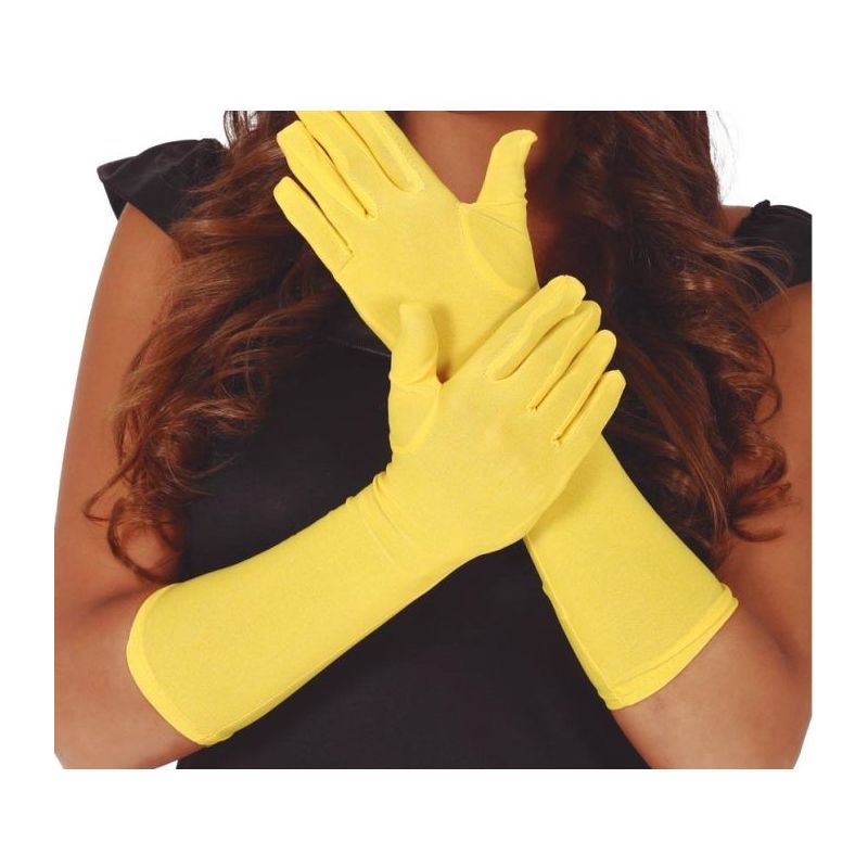 Guantes largos de color amarillo ideales para complementar tus disfraces de Carnaval. Medida: 42 cm. Otros colores disponibles a parte.