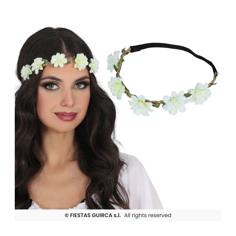 Cinta con flores ideal para complementar tus disfraces de hippie en fiestas de Carnaval y otras celebraciones.