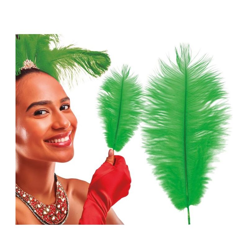 Bolsa con 12 plumas de avestruz de color verde. Medida: 30 cm. Otros colores disponibles a parte.