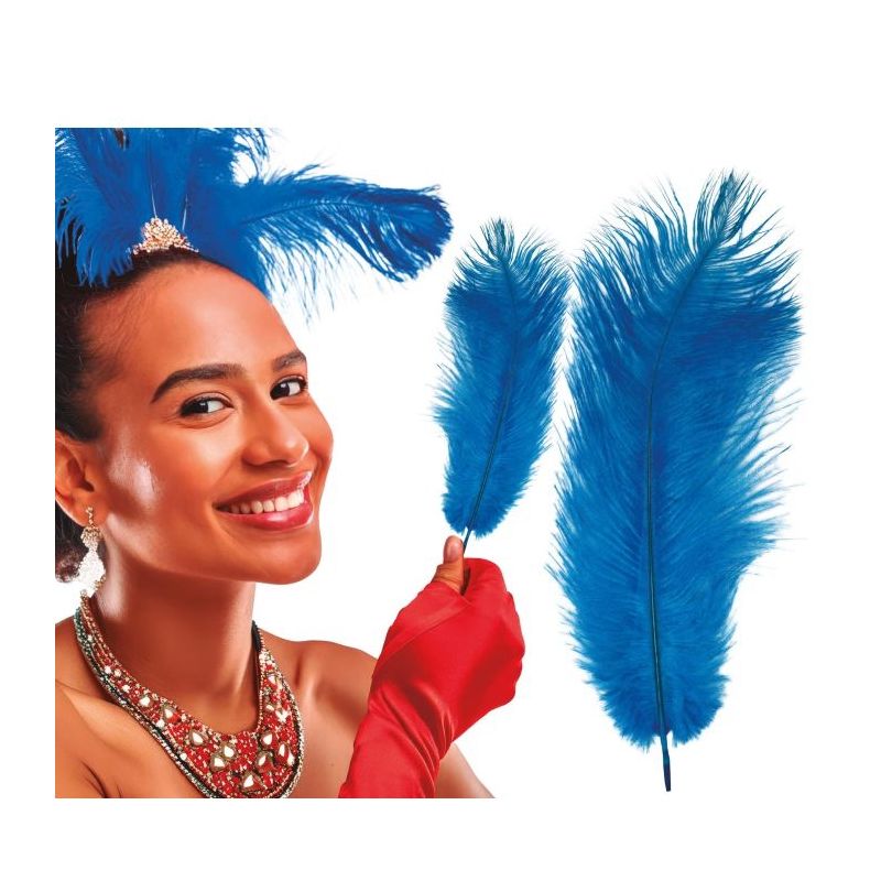 Bolsa con 12 plumas de avestruz de color azul. Medida: 30 cm. Otros colores disponibles a parte.