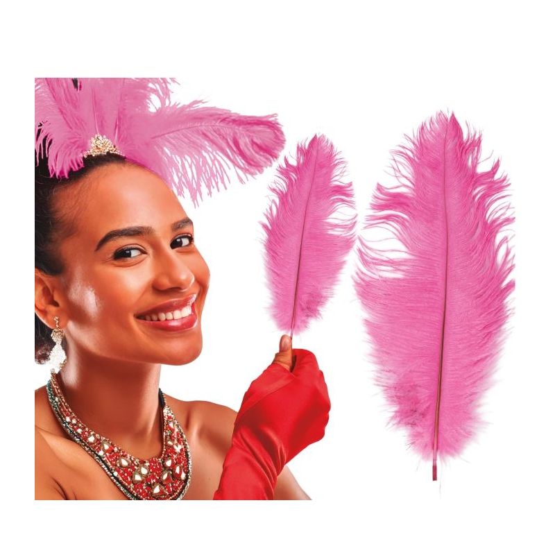 Bolsa con 12 plumas de avestruz de color rosa fuscia. Medida: 30 cm. Otros colores disponibles a parte.