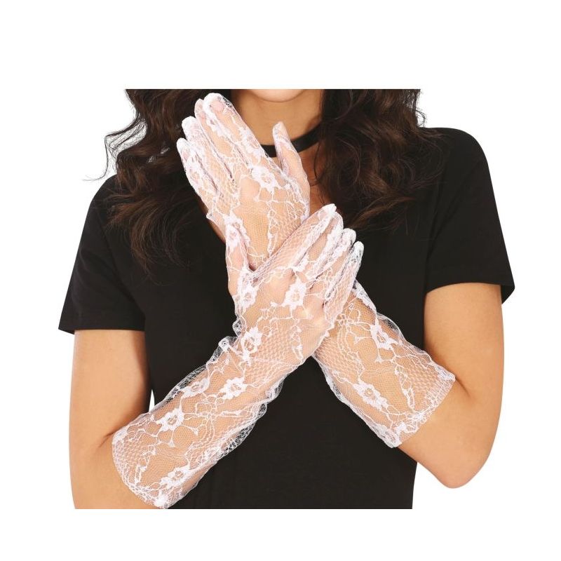 Guantes calados de encaje largos en color blanco. Talla única de adulto para mujer. Medida: 38 cm. Otros colores disponibles a parte.