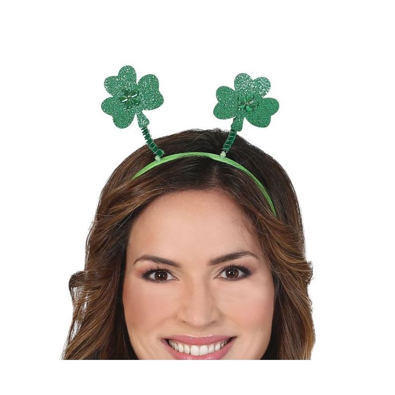 Diadema con tréboles de color verde ideal para crear looks originales y divertidos en fiestas de San Patricio. Talla única de adulto para hombre o mujer. Unisex.