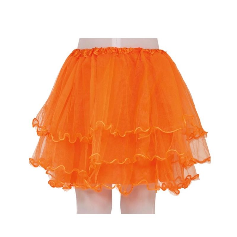 Falda o tutú con tres capas de volantes de tul en color naranja. Talla única infantil para niña. Largo: 30 cm. Otros colores y modelos disponibles a parte.