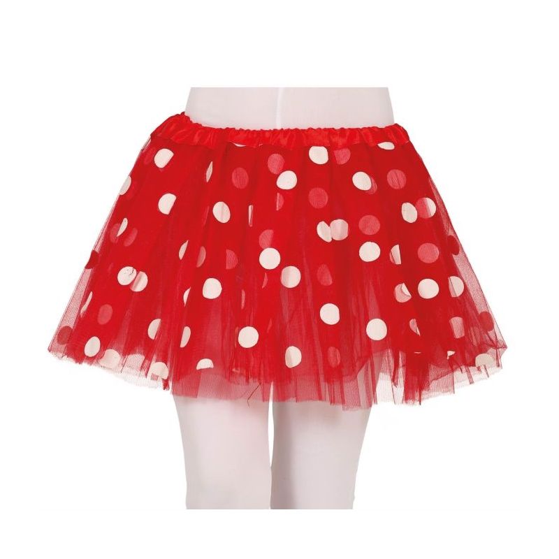 Falda de tul o tutú de color rojo impreso con lunares blancos. Talla única infantil para niña. Largo: 30 cm. Otros colores y modelos disponibles a parte.