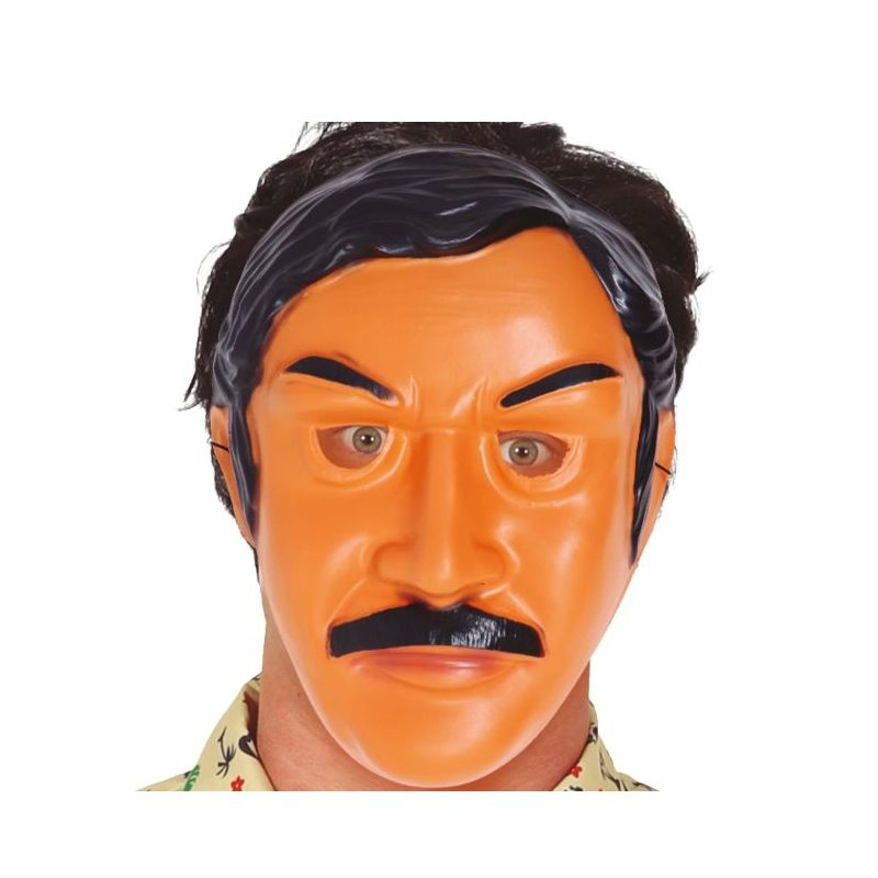 Careta de plástico ideal para disfrazarte del traficante colombiano Pablo Escobar. Talla única para adulto.