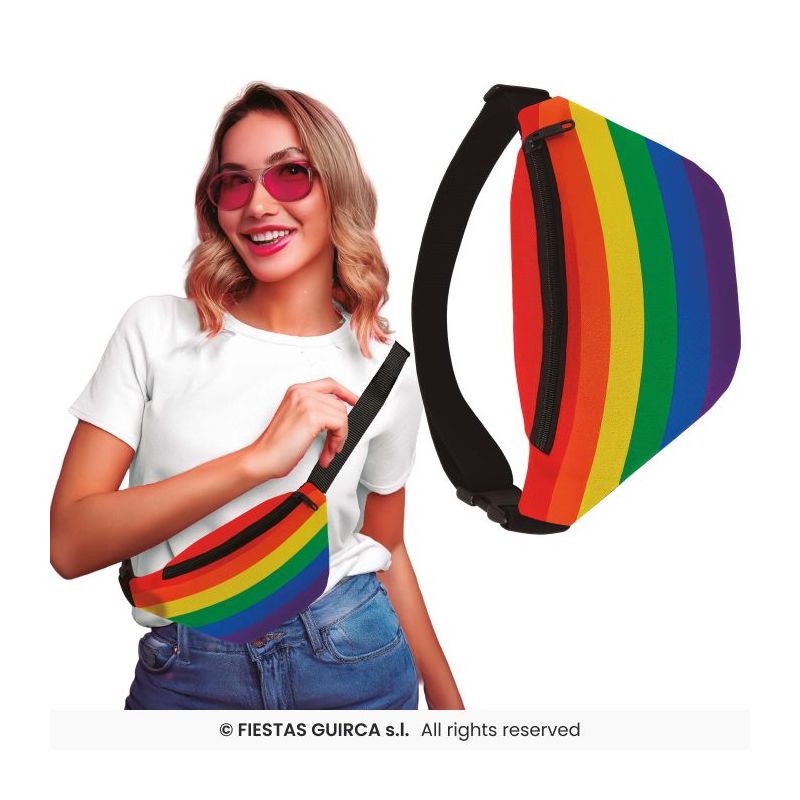 Original riñonera con la bandera del arcoíris ideal para dar un toque divertido a tu look en fiestas del Orgullo Gay y otras celebraciones.