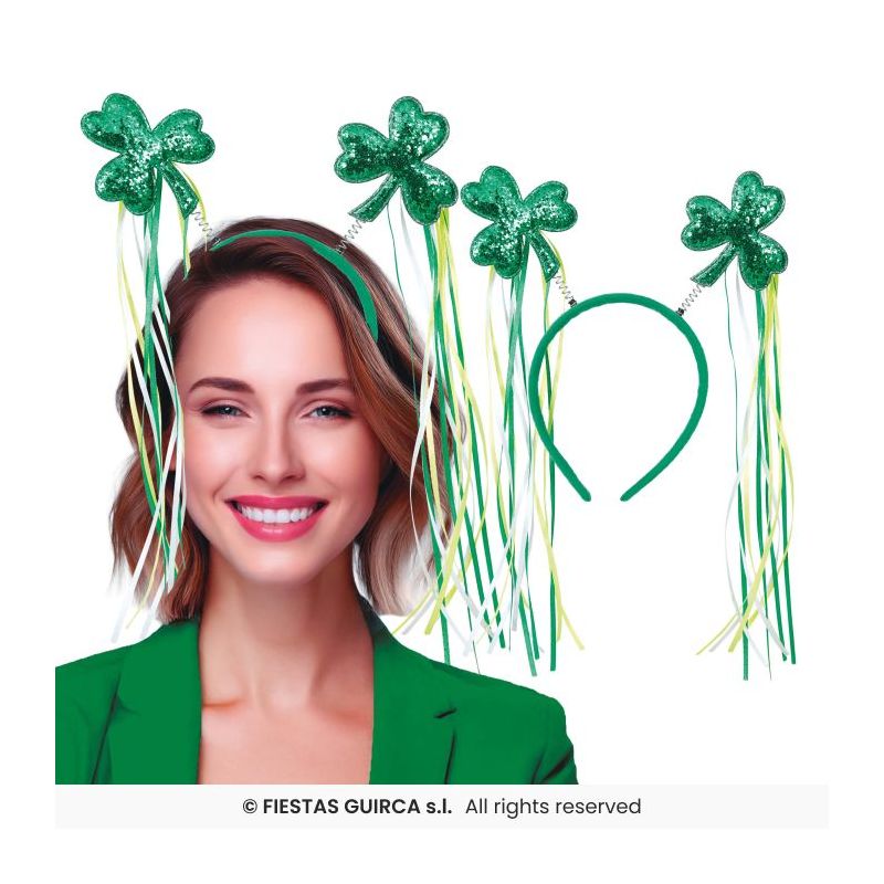 Original diadema con tréboles y cintas colgantes de color verde ideal para dar un toque divertido a tu look y en fiestas de San Patricio y otras celebraciones.