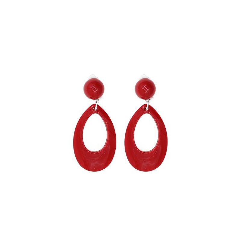 Complementa tus disfraces de flamenca, sevillana, madrileña o chulapa de una forma original y no te pierdas estos fantásticos pendientes ovalados en color rojo que puedes combinar con el collar y las pulseras a juego disponibles a parte.