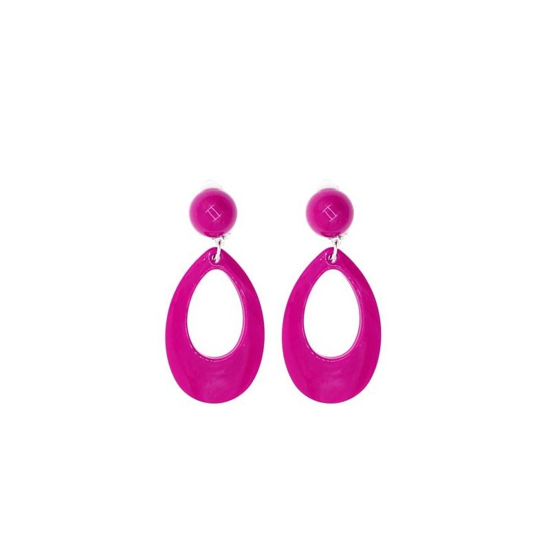 Pendientes ovalados de color rosa con sistema de clic. Medida: 8 cm. Otros colores disponibles a parte.