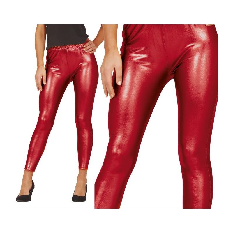 Leggins metalizados de color rojo ideales para crear looks originales y divertidos en fiestas de Carnaval, Halloween y otras celebraciones. Talla única de adulto para mujer. Otros colores disponibles a parte.