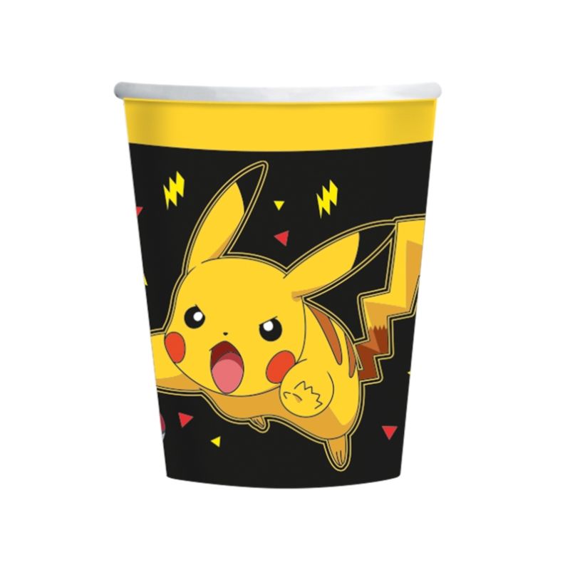 Pack de 8 vasos de papel impresos con el Pokemon Pikachu. Capacidad: 273 ml. Licencia oficial.