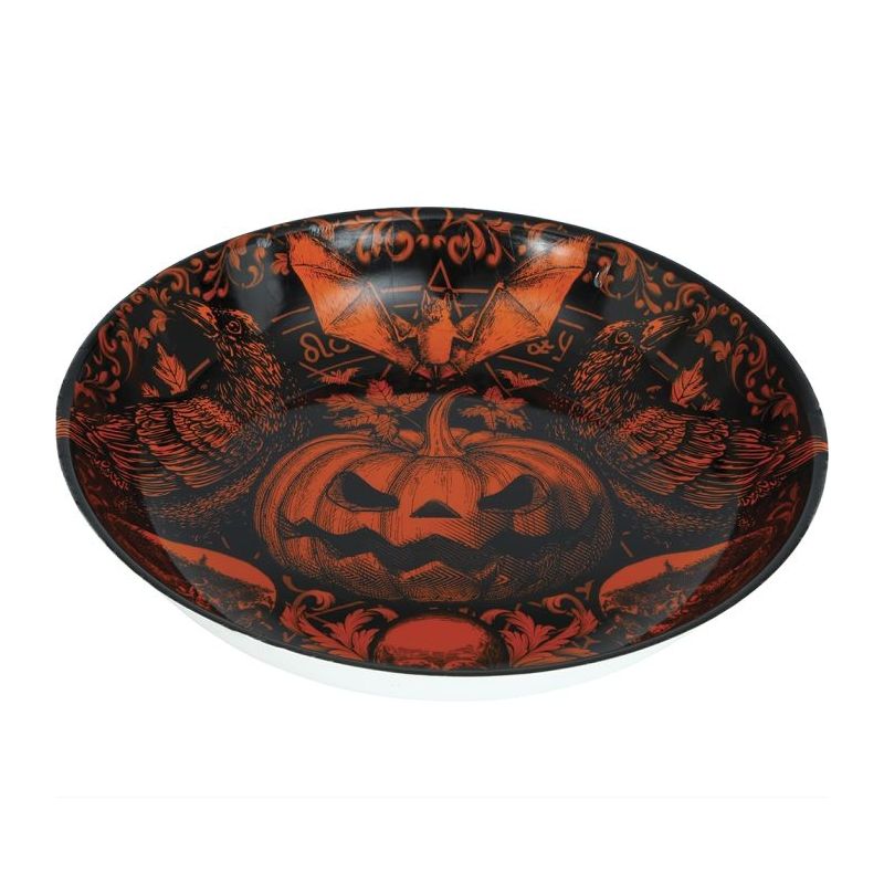 Bowl o cuenco redondo impreso con calabazas góticas. Medida: 32 cm. Resto de vajilla a juego disponible a parte.