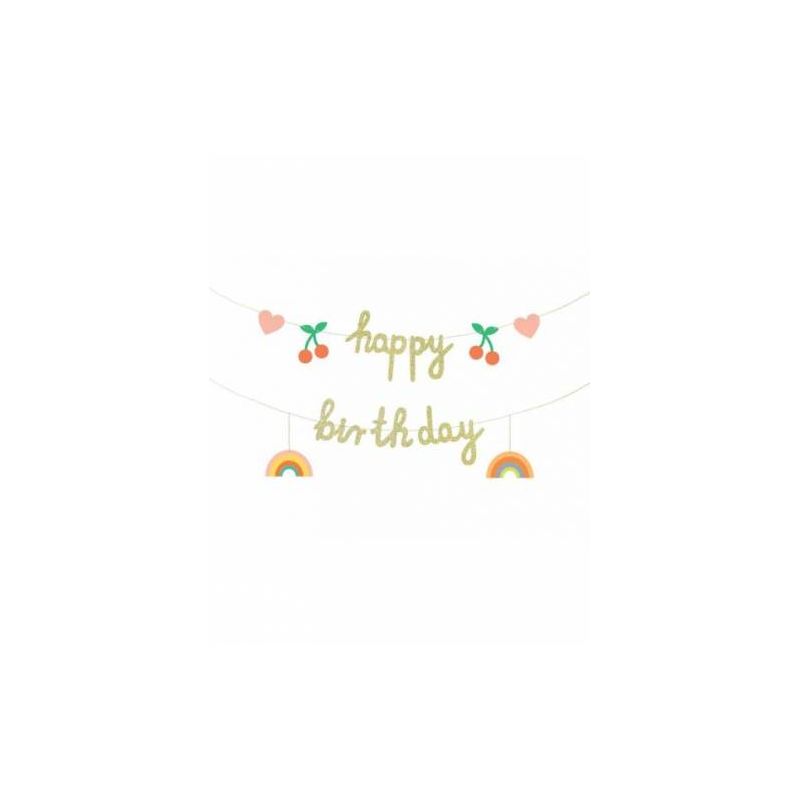Guirnalda de feliz cumpleaños con cerezas ideal para decorar tus aniversarios y celebraciones especiales.