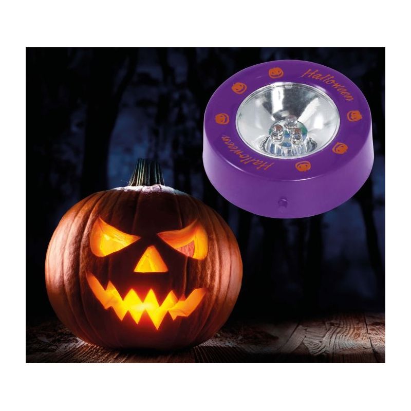 Dispositivo de luz led circular ideal para iluminar el interior de las calabazas y decorar tus fiestas de Halloween.