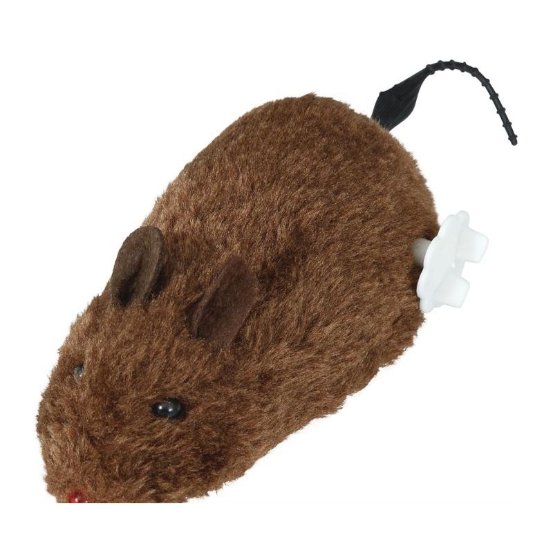 Original rata peluda marrón con ruedas y sistema de cuerda que hace que se arrastre. Medida: 16 cm. Otros bichos disponibles a parte. Ideal también para utilizar como decoración en fiestas de Halloween.