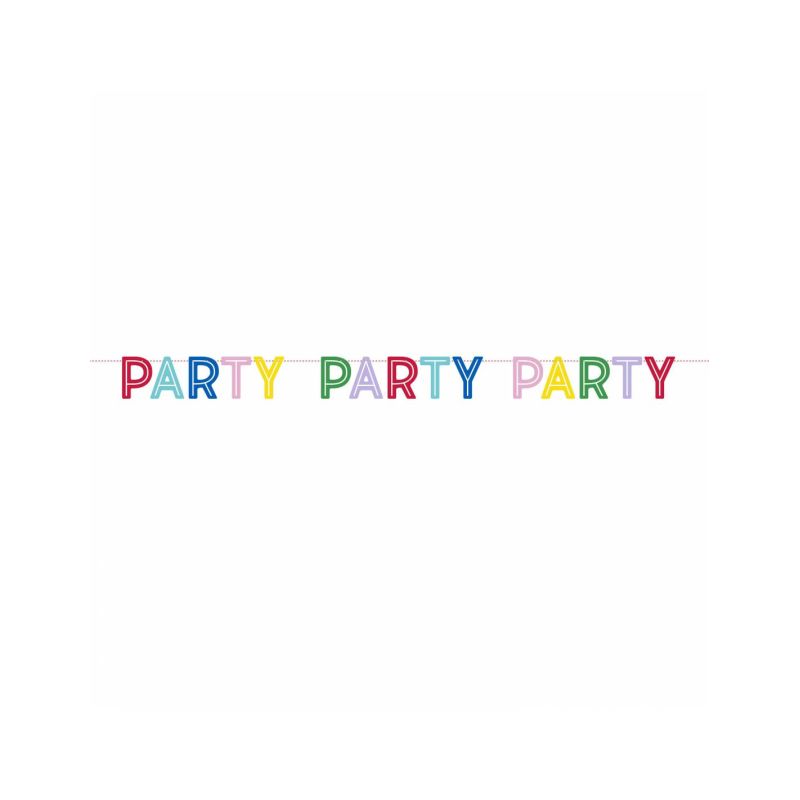 Guirnalda formada por las letras “party party” (fiesta fiesta) ideal para decorar fiestas de cumpleaños y otras celebraciones.