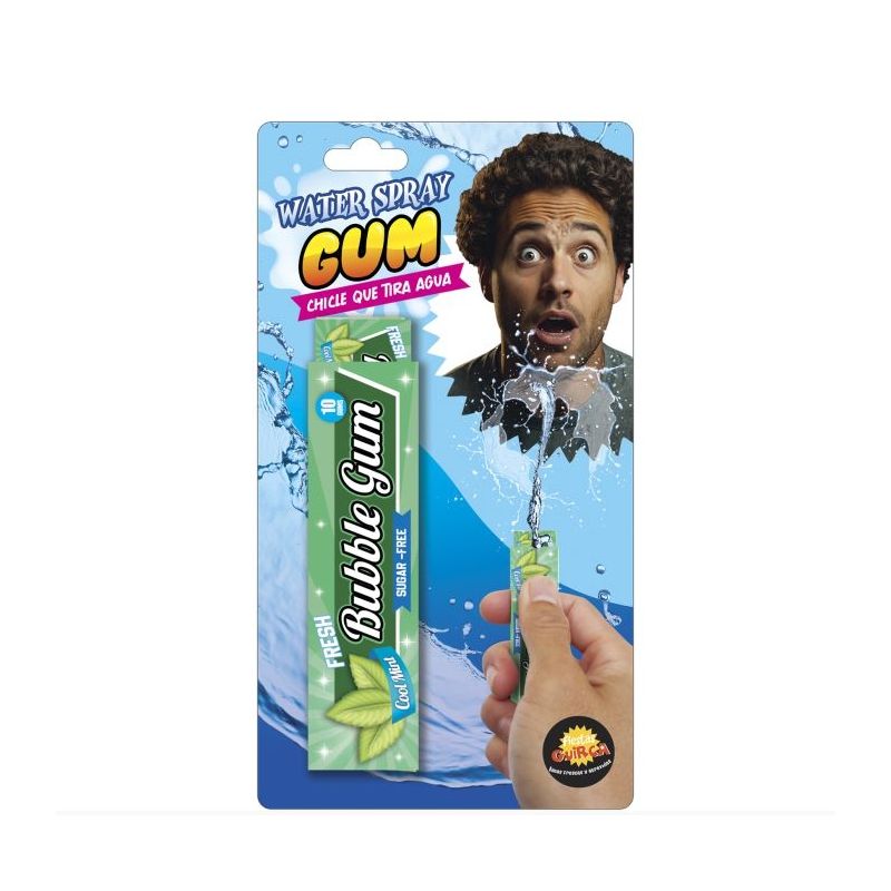 Original broma con forma de paquete de chicles que al intentar extraer uno de ellos, disparará un chorro de agua a tu víctima. Otras bromas disponibles a parte.