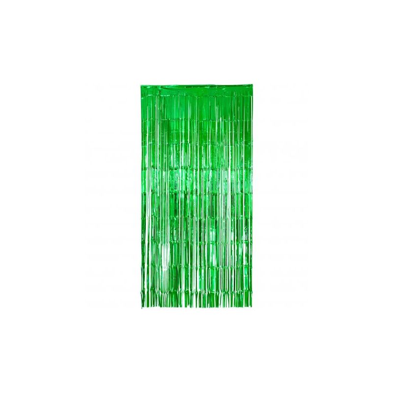 Cortina metalizada de flecos en color verde brillante ideal para decorar fiestas de cumpleaños y otras celebraciones especiales. Medida: 2 x 1 m. Otros colores disponibles a parte.