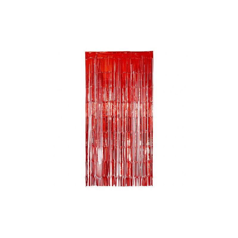 Cortina metalizada de flecos en color rojo brillante ideal para decorar fiestas de cumpleaños y otras celebraciones especiales. Medida: 2 x 1 m. Otros colores disponibles a parte.
