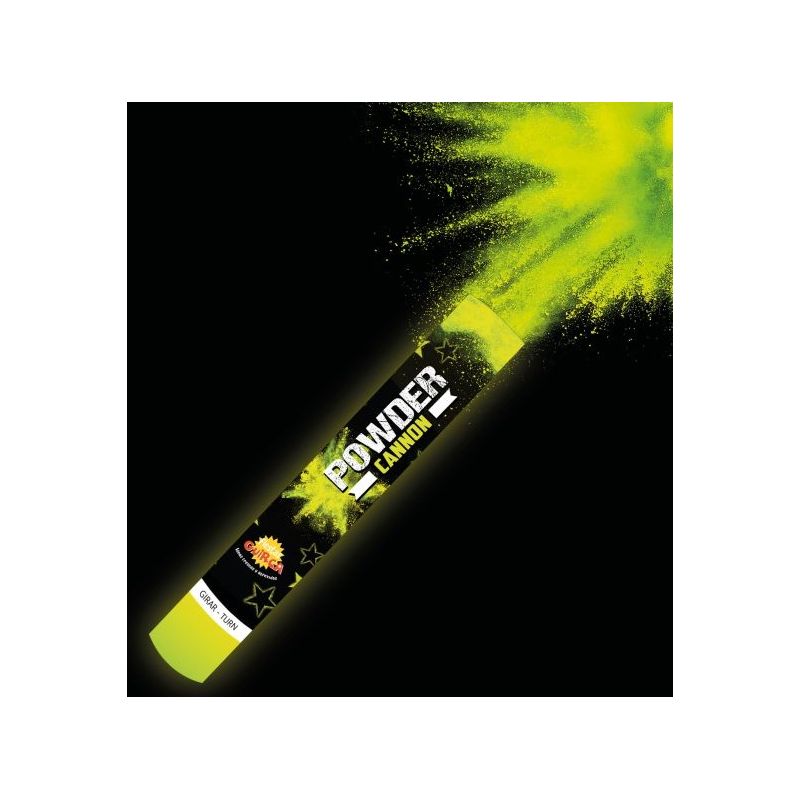 Cañón con aire comprimido relleno de polvo de color amarillo. Medida: 30 cm. Contiene 30 gramos de polvo. Otros colores disponibles a parte.