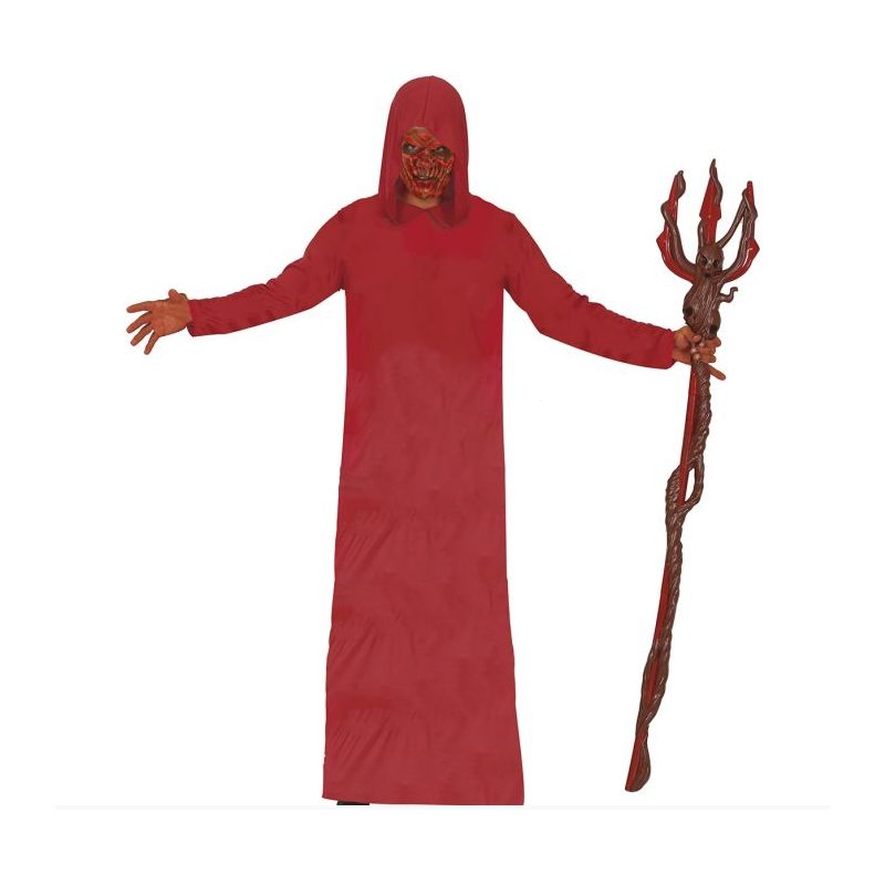 Túnica roja con capucha ideal para disfrazarse de diablo o demonio en fiestas de Halloween. Talla única de adulto para hombre.