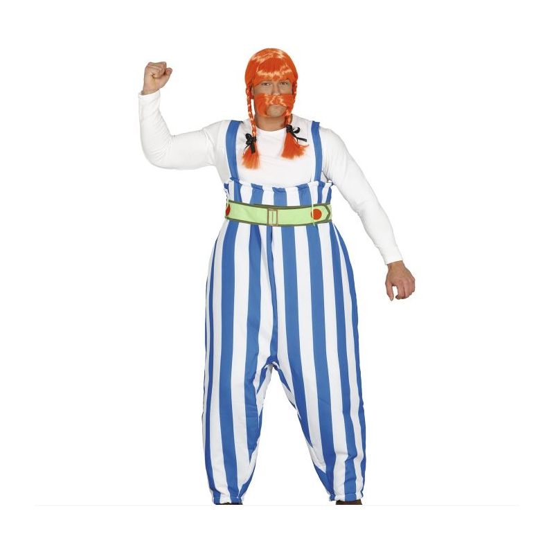 Disfraz de galo para hombre ideal para disfrazarse de Obelix compuesto por pantalón tipo peto con rayas y cinturón. No incluye camiseta. Disponible en tallas S, M, L y XL para adulto.