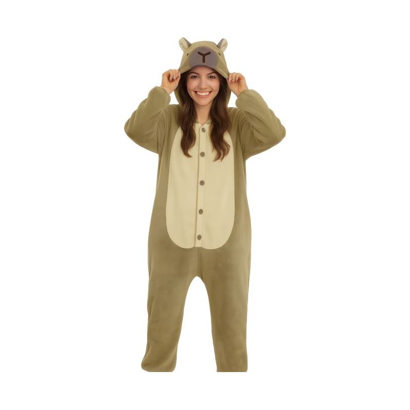 Disfraz de capibara para hombre o mujer compuesto por traje con capucha. Disponible en talla única para adulto unisex.