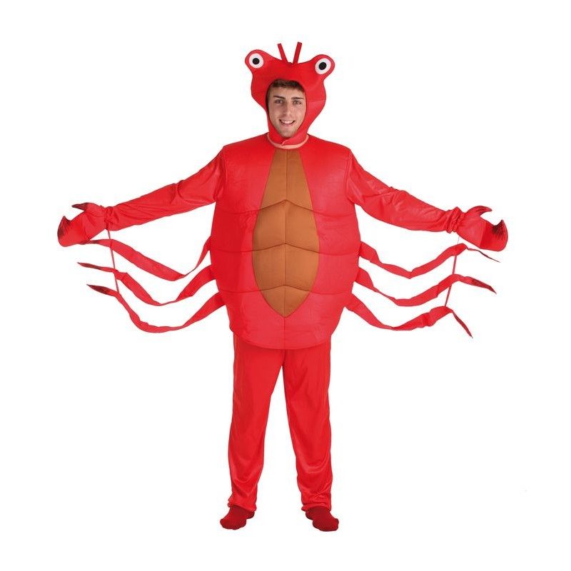 Disfraz de cangrejo rojo para hombre compuesto por traje y gorro a juego. Disponible en talla única para adulto.