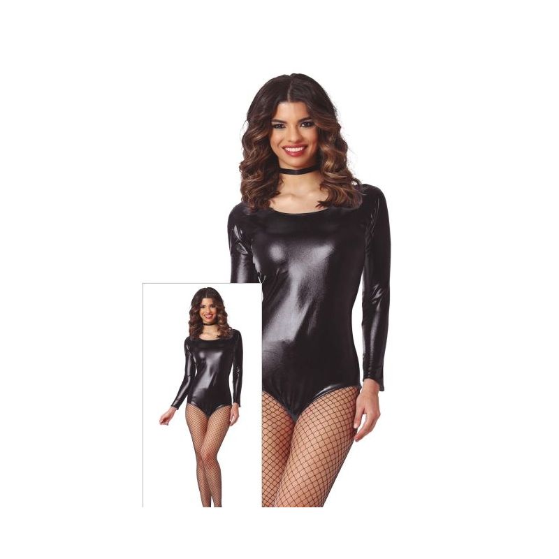 Maillot de manga larga en color negro brillante efecto vinilo. Disponible en tallas M y L de adulto para mujer. Otros colores disponibles a parte.