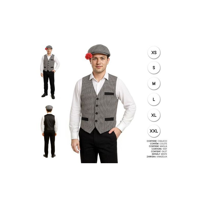 Chaleco de sastrería ideal para disfrazarte de chulapo en fiestas de San Isidro. Disponible en tallas S, M, L y XL de adulto para hombre.