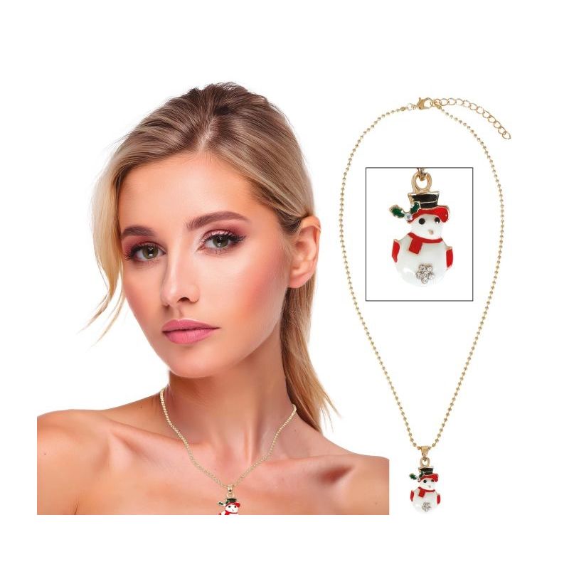 Collar metálico de color dorado con un original colgante en forma de muñeco de nieve. Otros modelos disponibles a parte.