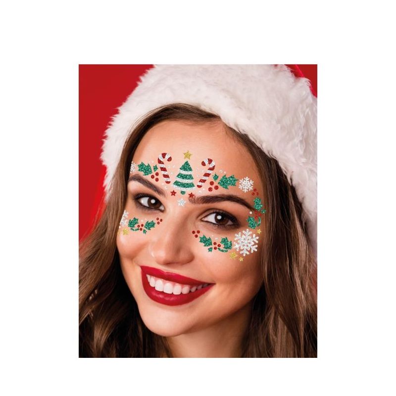 Preciosas pegatinas faciales con diseño navideño presidido por un árbol de Navidad ideales para dar un toque original y divertido a tu look en estas fechas tan especiales.